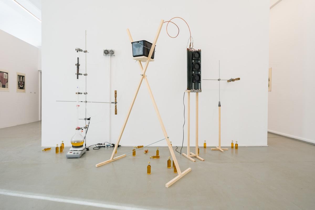 In Beloved Bucharest, a group exhibition with work by Geta Brătescu, Florina Coulin, Alice Gancevici & Remus Pușcariu, Ion Grigorescu, Mircea Nicolae, Ștefan Sava, Mona Vătămanu & Florin Tudor at Ivan Gallery was an interesting look into how Bucharest has changed and transformed since the 1977 earthquake and post communism. This work by Alice Gancevici & Remus Pușcariu was interesting, if I remember correctly this machine transformed wood into some sort of liquid.